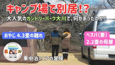 キャンプ場【シニア夫婦の週末キャンプ】キャンプ場で別居!? 『2.2畳の母屋(ハイエース)』と『離れ(極寒シェルター)』