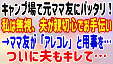 キャンプ場【スカッとする話】キャンプ場で元ママ友にバッタリ!私は無視、夫が親切心でお手伝い→ママ友が「アレコレ」と用事を…ついに夫もキレて…